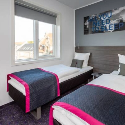 Priseksempelet inkluderer båtreise tur/retur for personer og bil, én natt i dobbeltrom på CABINN Aalborg Hotel og frokost på hotellet.