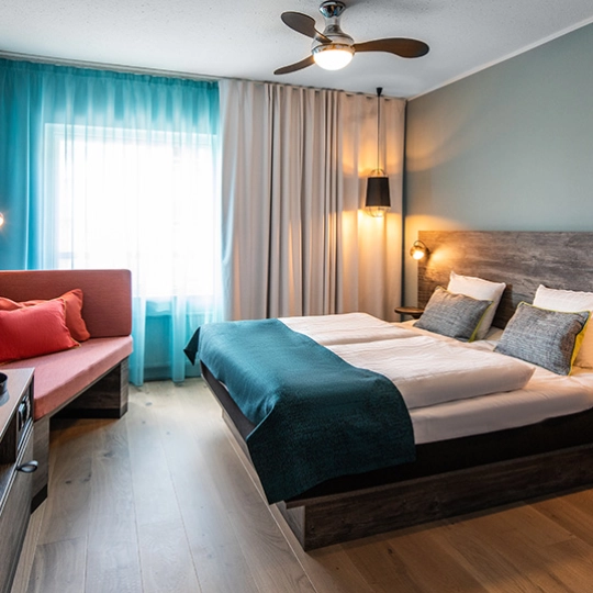 Hotellet har 210 rom, alle lekkert og barnevennlig innredet. Her er det godt å trekke seg tilbake etter en dag full av lek og moro. Alle rom har bad med dusj og WC, TV og gratis trådløst internett.