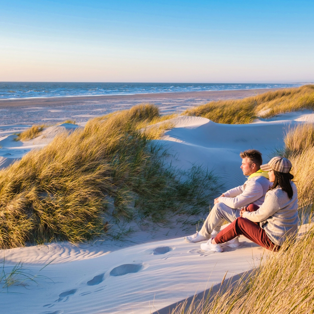 Blant klassiske badehus, rammet inn av hvite klitter, er det mest naturlig å bare ligge rett ut, mens den rastløse typen kan bygge sandslott, bade og kose seg. Legg deg godt til rette, vipp «en kald en» og la kroppens stress og styr avspennes. Her er det deilig å bare være til.