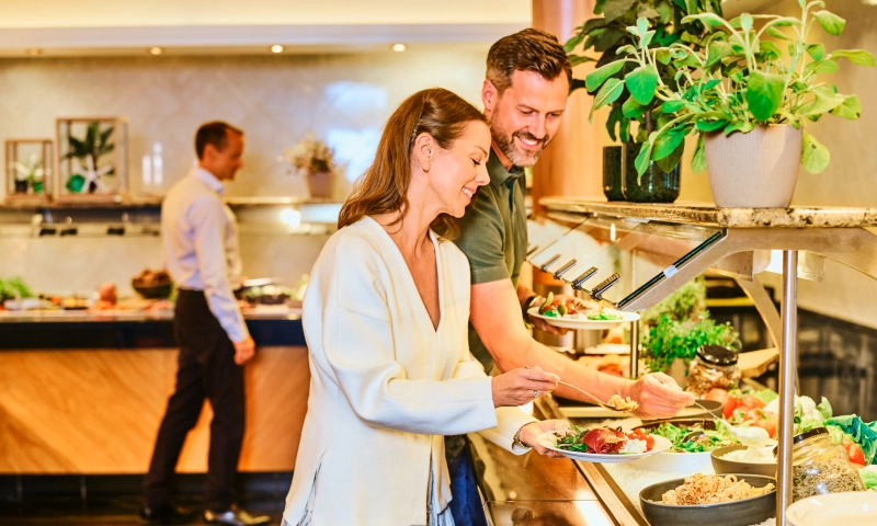 I Grand Buffet velger hver enkelt hva de selv ønsker å spise. Her finner dere et stort utvalg av varme og kalde retter, samt et rikholdig dessertbord.