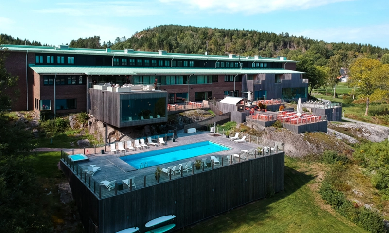 Bo helt i strandkanten ved Grebbestad på Bohuslänkysten. Feriesenteret har et stort bassengområde med vannsklie, restaurant i nordisk stil med open kitchen, spa-avdeling med flott havutsikt og fantastiske uteområder.